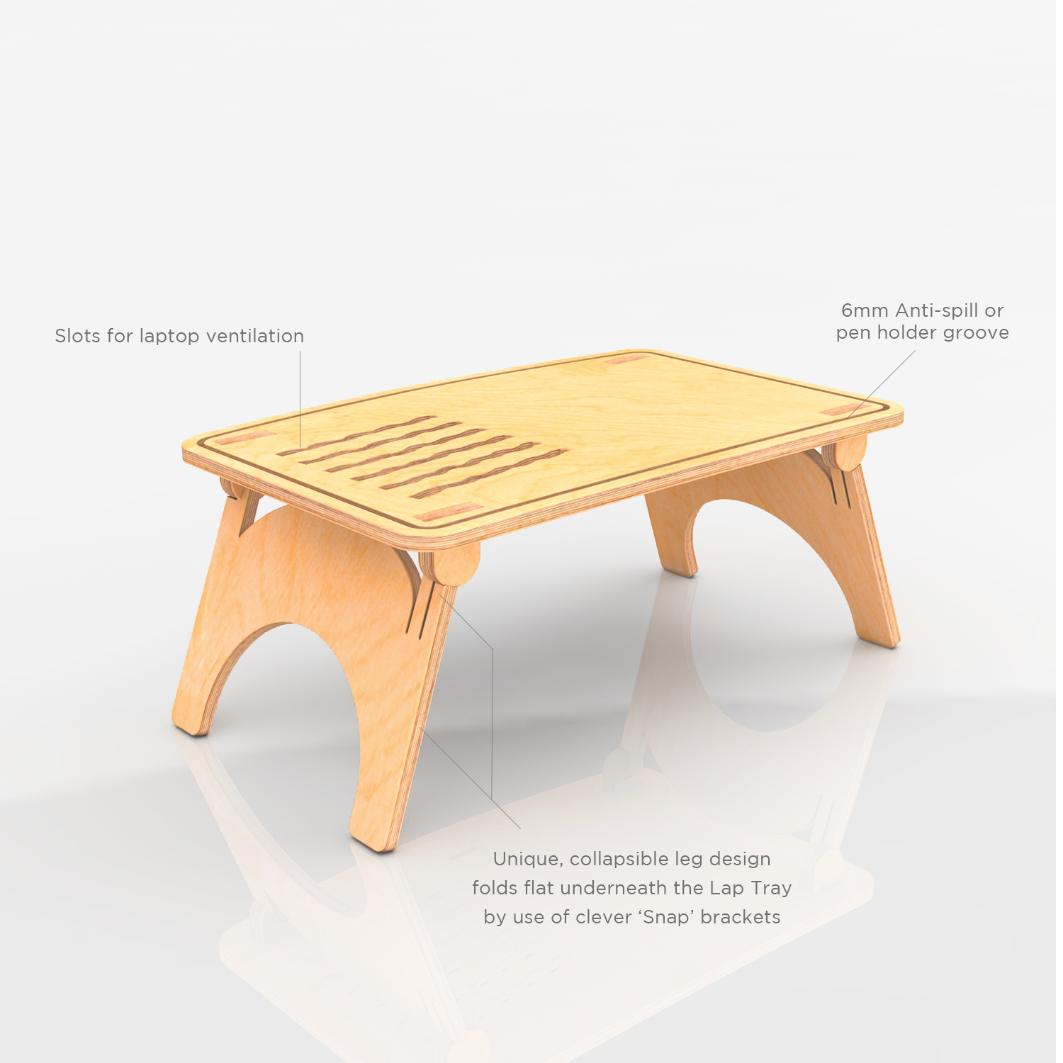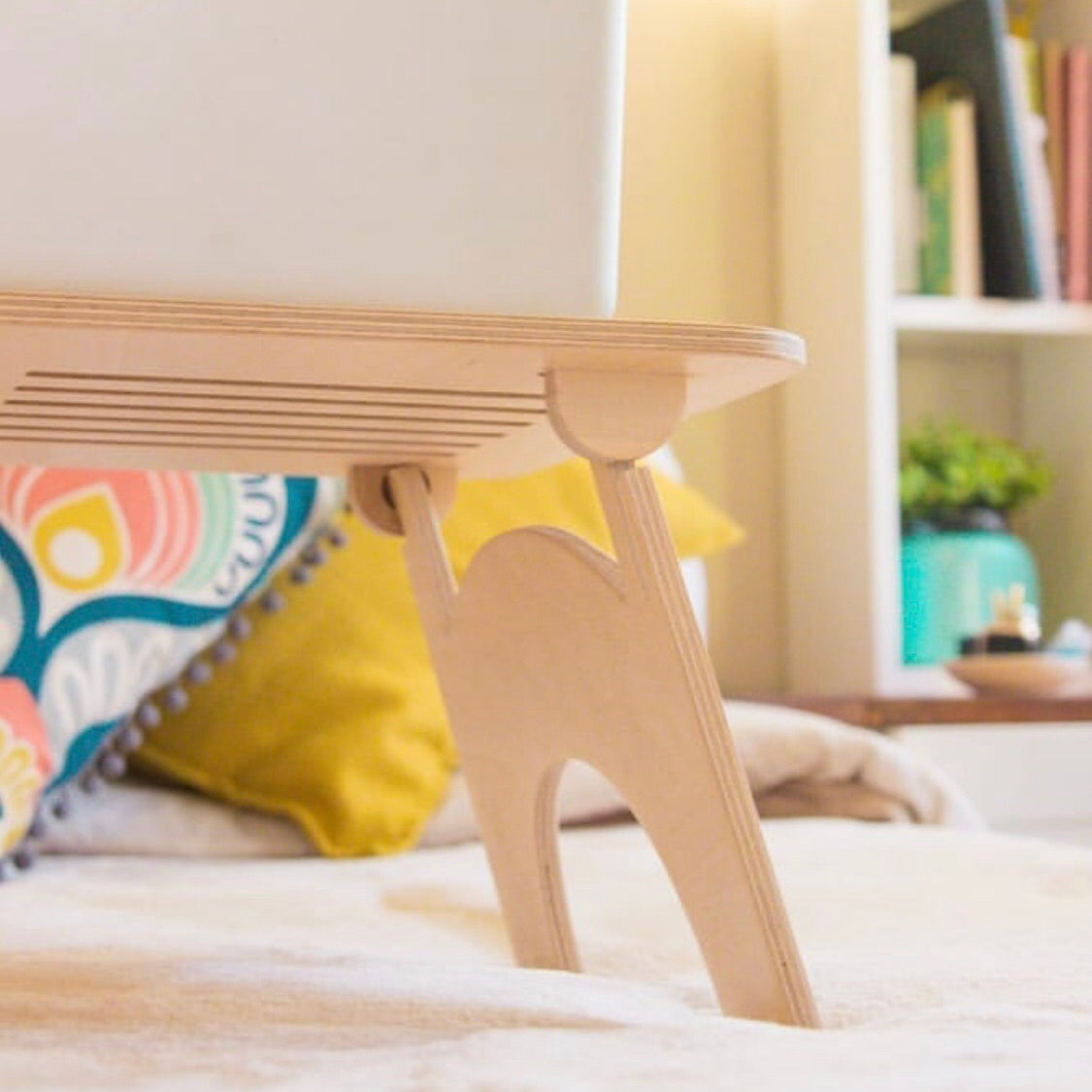 This beautifully designed, hand-made Sit-Stand Lap Table or Standing Desk has many uses. ... Innovative air-vents cools one's laptop when using the Bed Table. Lightweight and foldable standing desk can be used on any table top.