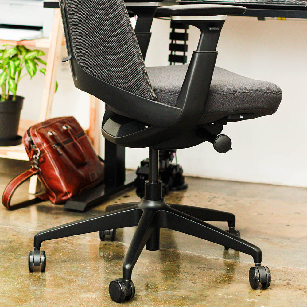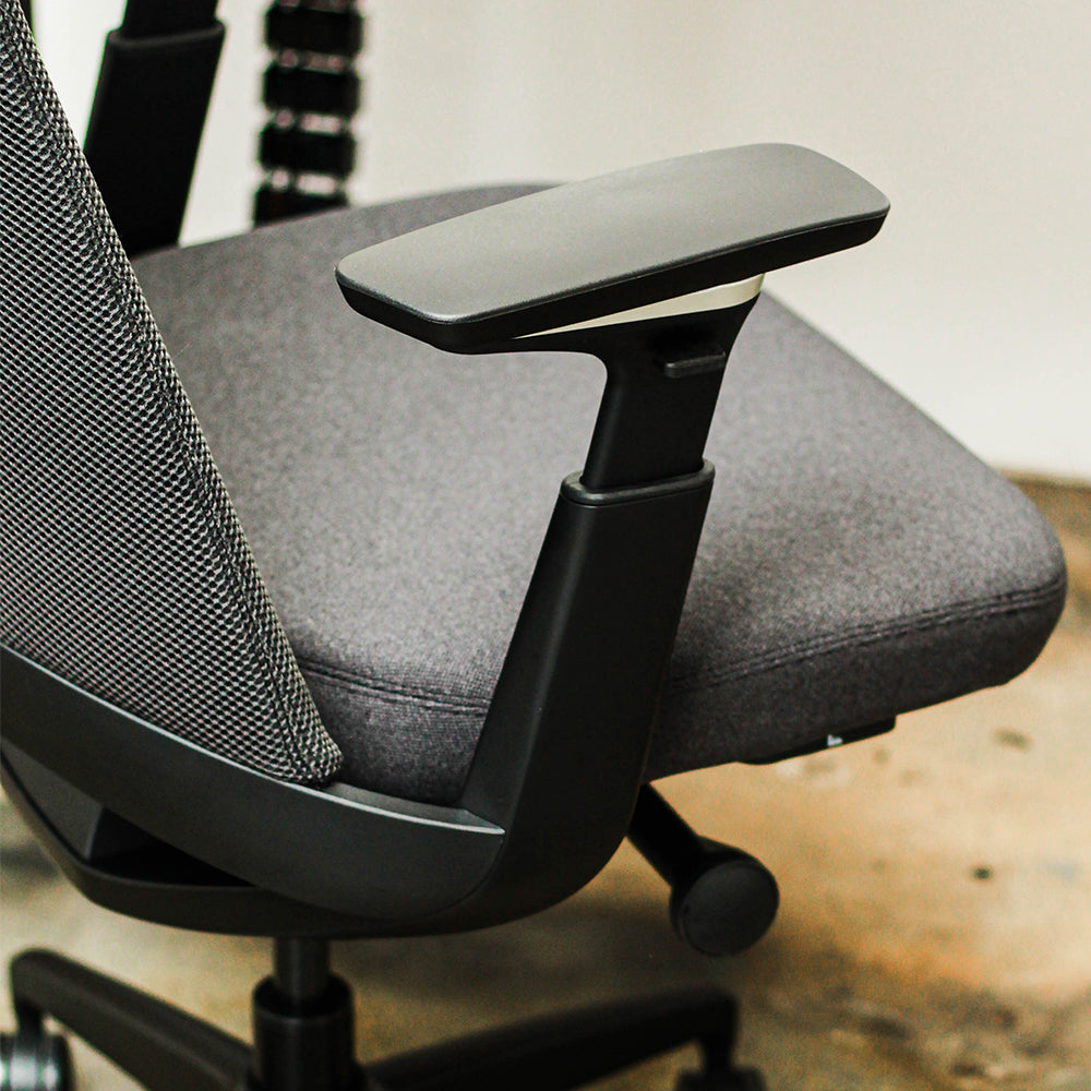 - Armrest pads' depth adjustment enables closer desk seating when needed.