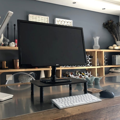 This Height Adjustable Monitor Stand is a flexible solution for elevating computer monitors, screens, or laptops. Featuring three height settings, it supports ergonomic positioning to help minimize strain and improve comfort.