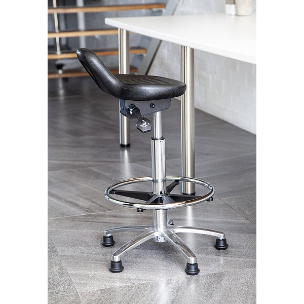Elevate the seat for a higher position, with the option to rest your feet on the foot ring while working at raised surfaces.