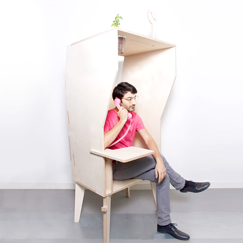 The Wiki Booth is a hybrid telephone and solo-working booth. Originally designed as a playful privacy solution, the Wiki Booth provides the perfect quiet corner in co-working spaces and open plan offices.